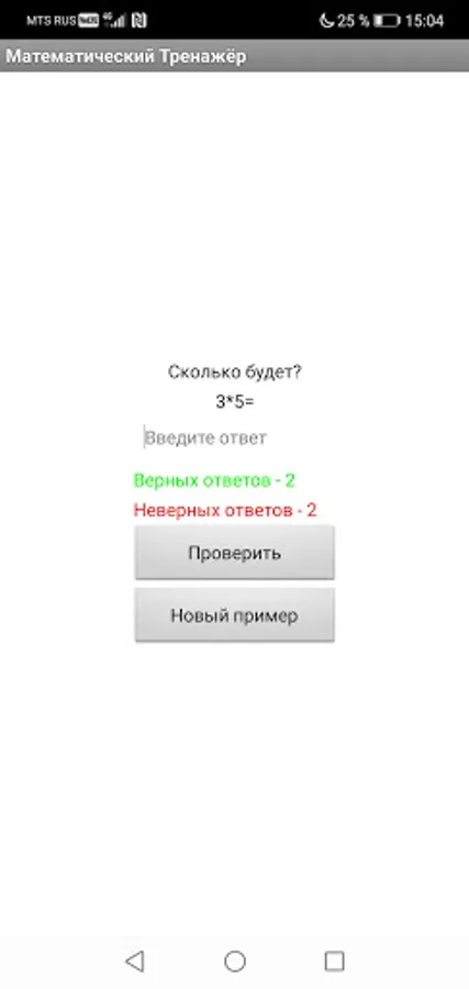 This is a math simulator to help you learn. You will be given examples and you will have to solve them, and the program will count your mistakes and correct answers. Happy learning!