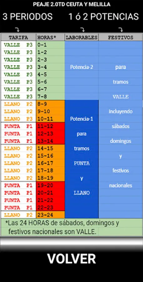 The new 2.0TD toll consists of three sections on weekdays: Punta, Valle and Llano.