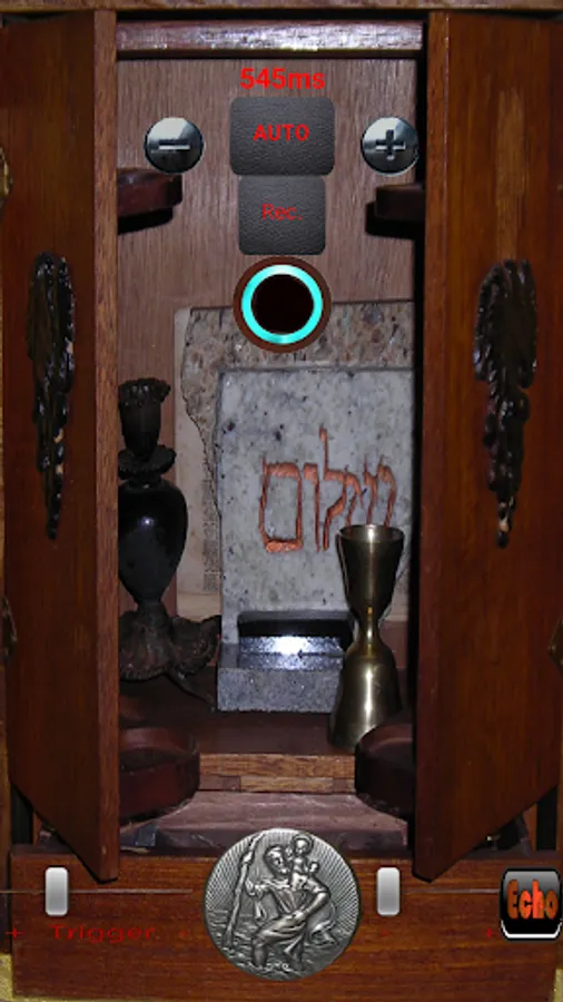 This ITC tool contains the real pic of the real Dibbuk Box and a set of disturbing audios, some of them from real evps that seems come from hell to act as trigger sounds, and all of them reversed audios in different lenguages. It has a manual speed set with + and - buttons and an auto speed button.