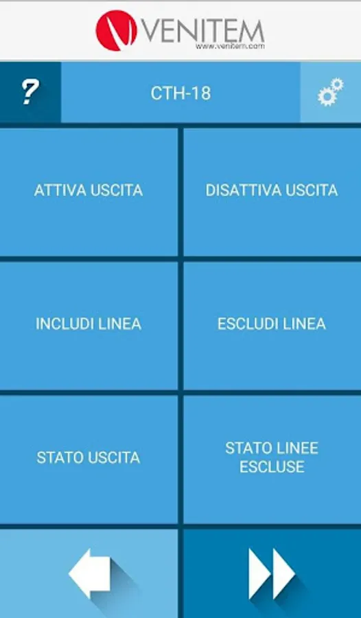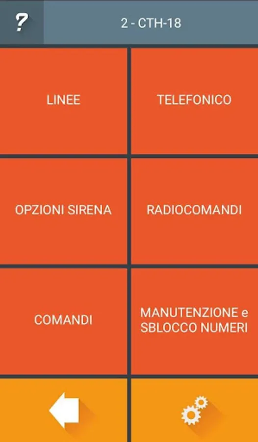 The application is divided into practical programming menu and control of the various settings and functions of the alarm system. The help button is available on all screens to illustrate the features offered and provide explanations on the buttons.