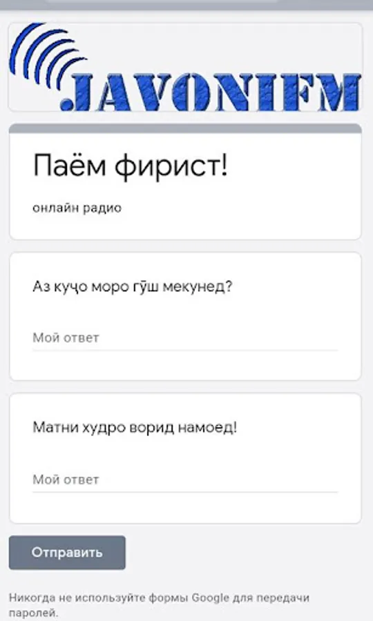 Bo istifoda az barnomai “Chavoni FM” shunavandagon metavonand az tamomi kanori Dunyo bo mo payvast shuda, 24 soat az pakhshi barnomaҳo, navgoniҳo, ittioloot va elonu advertising oi radio ҳg boshand wa be yagon moneristoi ba mo paemiҳa.