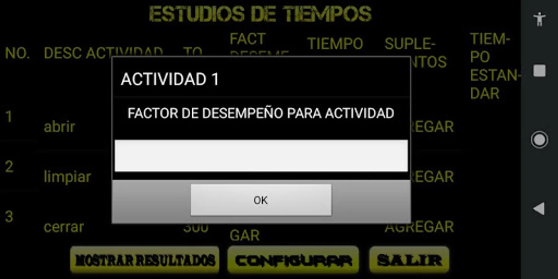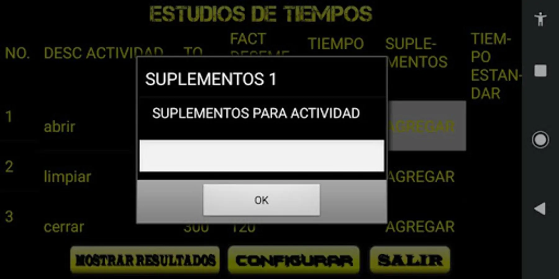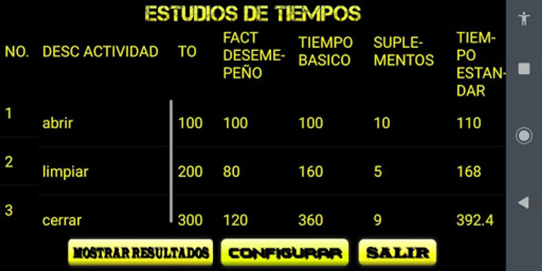 Application that allows calculating the Standard Times of the activities by providing the Observed Times, Performance Rating and the allocation of Supplements.