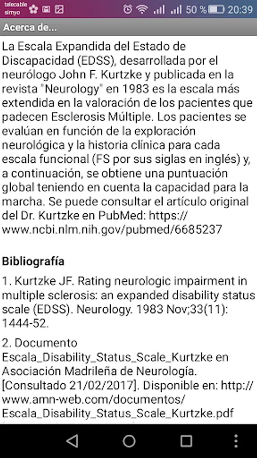 The Expanded Scale of Disability Status (EDSS), developed by the neurologist John F. Kurtzke and published in the journal "Neurology" in 1983, is the most widespread scale in the assessment of patients suffering from Multiple Sclerosis. Patients are evaluated based on the neurological examination and clinical history for each functional scale (FS) and then a global score is obtained taking into account the ability to walk. You can consult the original article by Dr. Kurtzke in PubMed: https://www.ncbi.nlm.nih.gov/pubmed/6685237