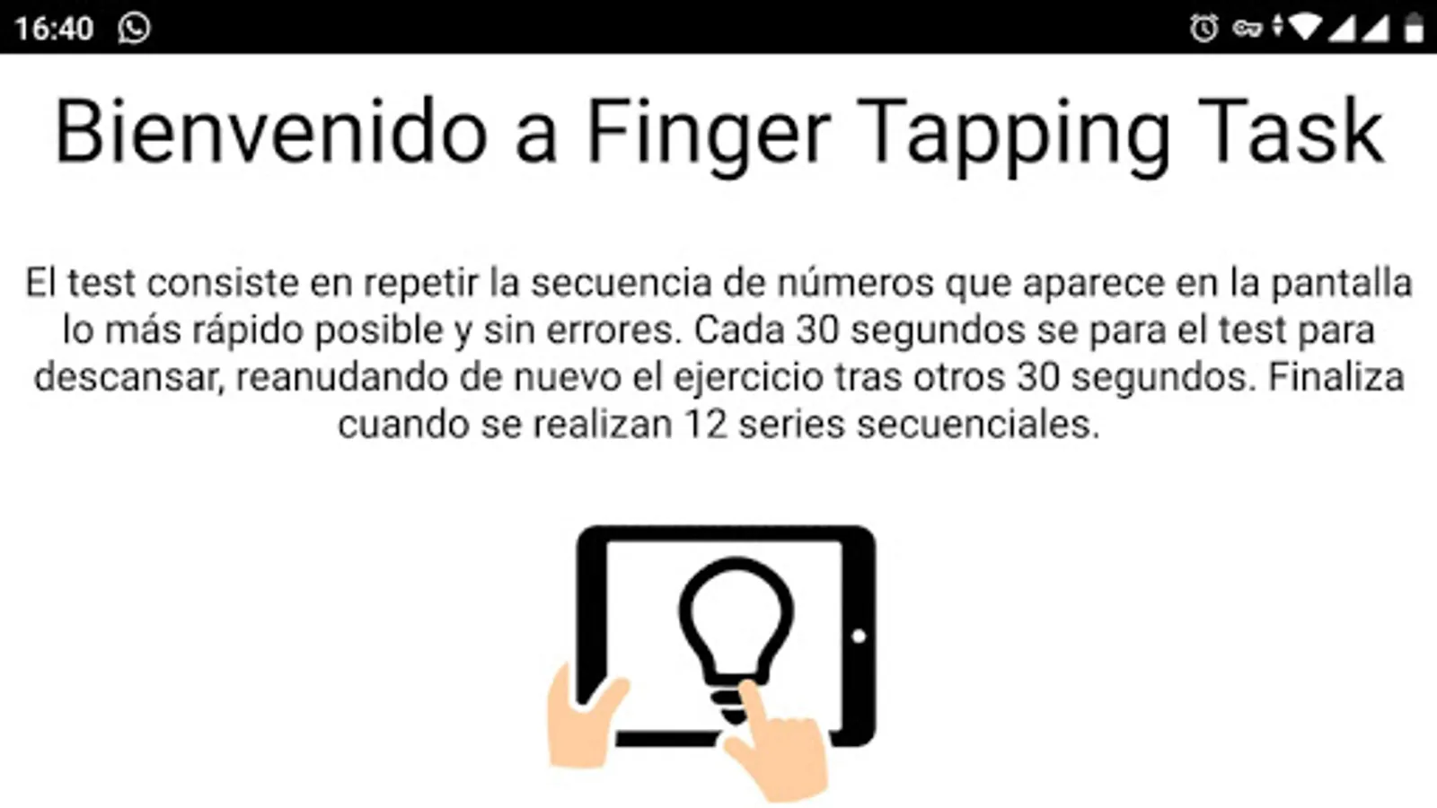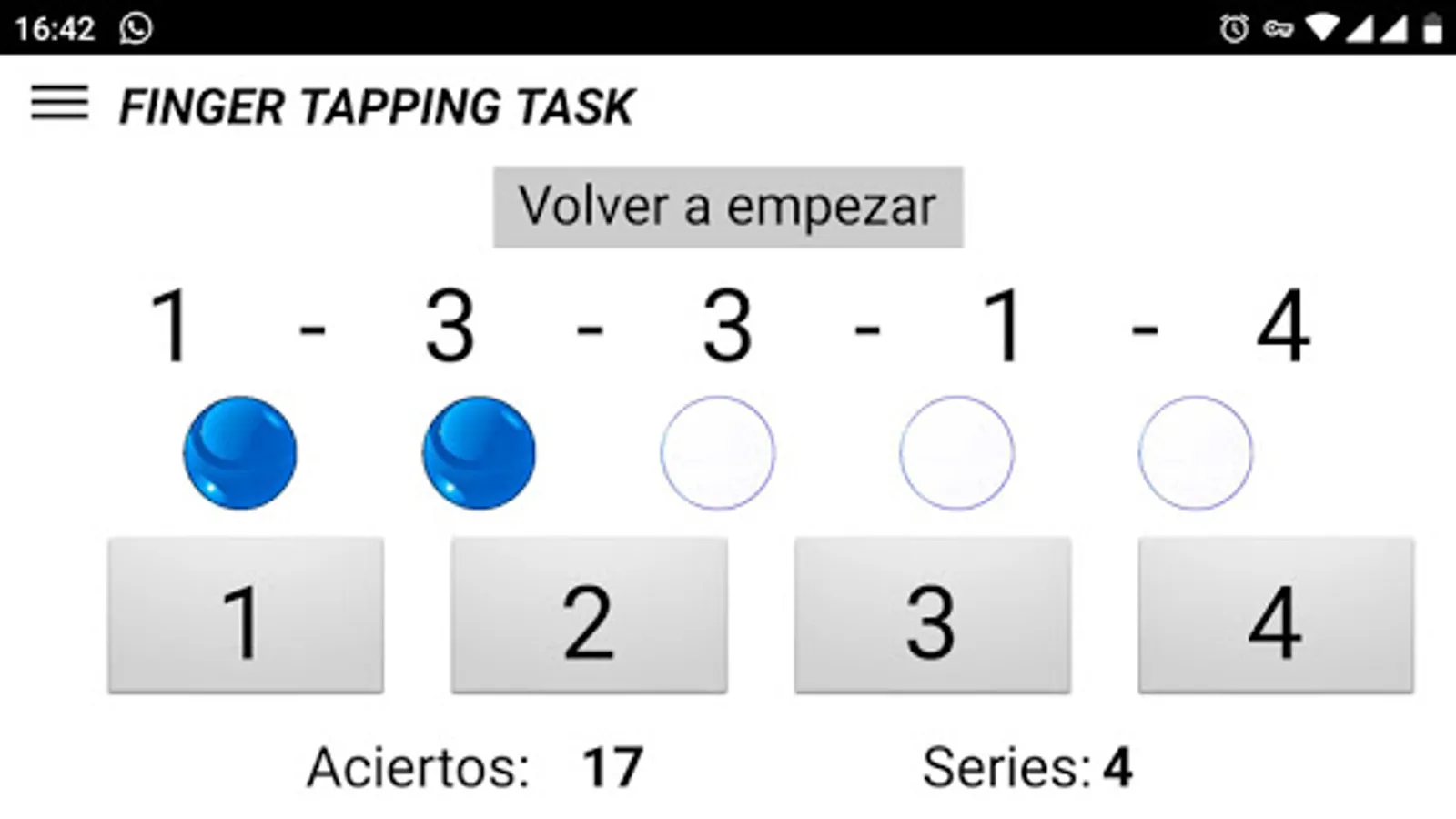 The test consists of repeating the sequence of numbers that appears on the screen as quickly as possible and without errors. Every 30 seconds the test is stopped to rest, resuming the exercise again after another 30 seconds. It ends when 12 sequential series are performed.
