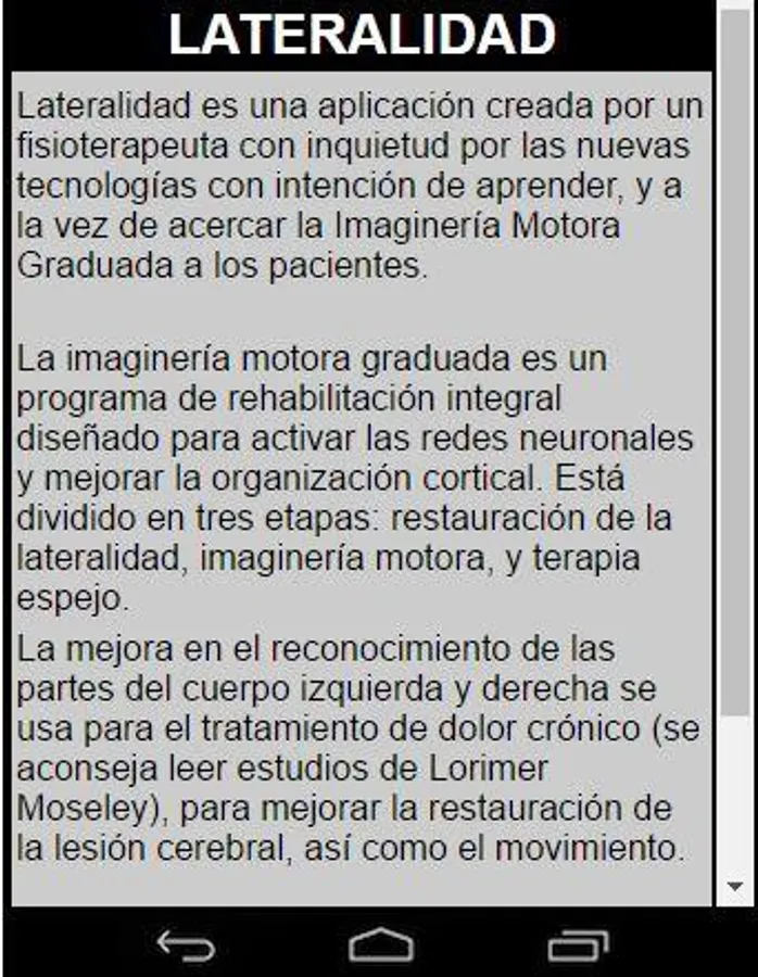 It is a simple application in Castilian, created by a physiotherapist with concern about new technologies with intent to learn, and at the same time to bring the imaging Motorboat Graduating patients.