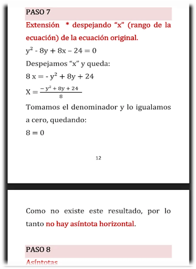 It contains several solved exercises and the step-by-step explanation of how to analyze a polynomial equation, indicating how its intersection is identified, its symmetry, extension, asymptotes, tabulation and graph, with respect to each of its axes and the origin of the Cartesian plane .