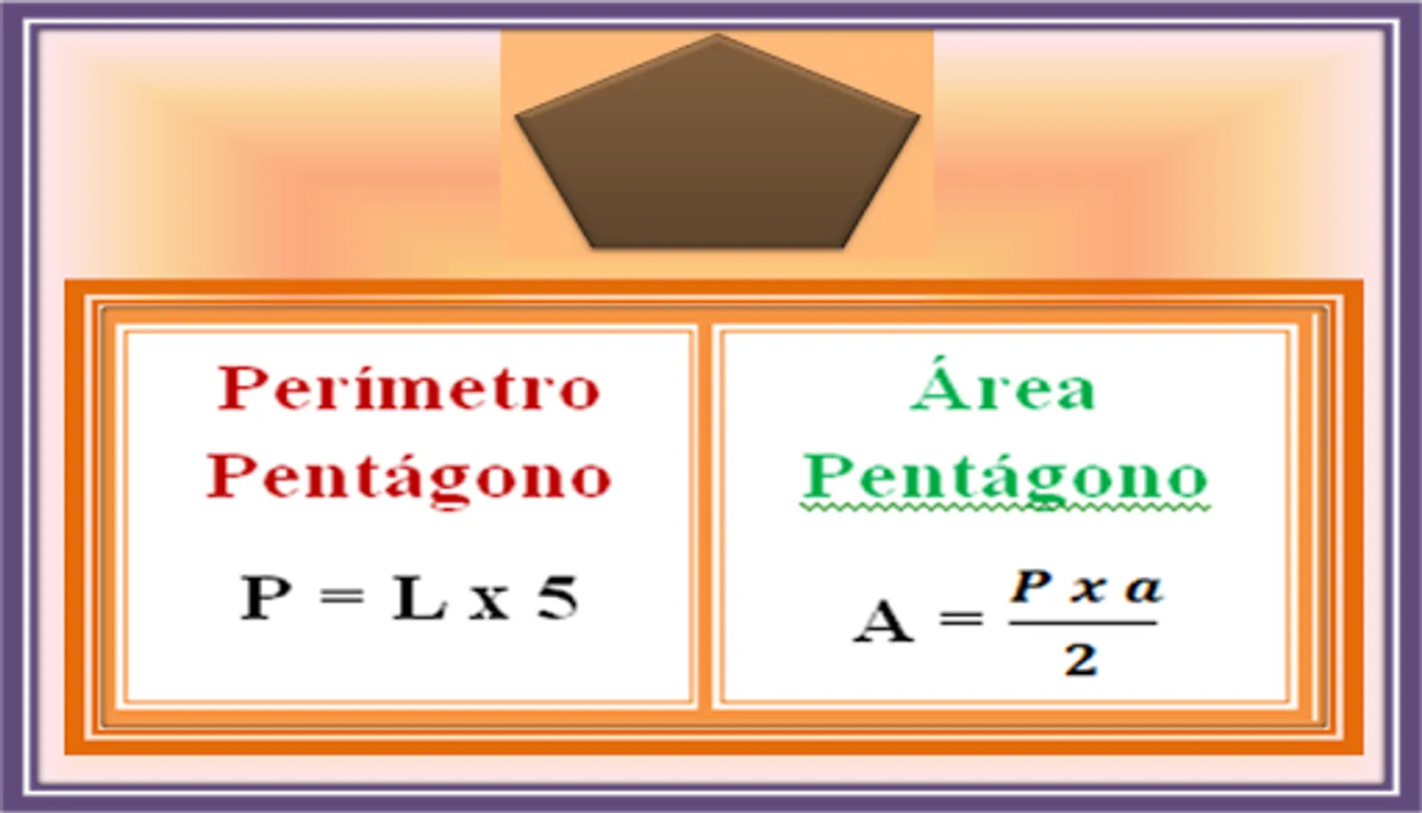 FORMULAS OF PERIMETERS AND AREAS, contains 9 formulas of the following geometric figures: triangle, square, rhombus, trapezoid, pentagon, circle, rhomboid, rectangle, hexagon.