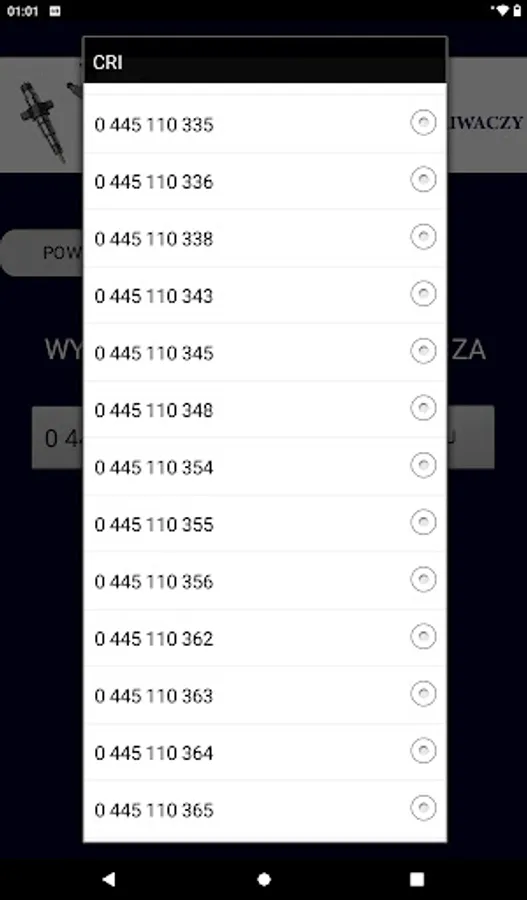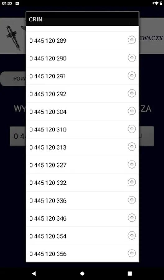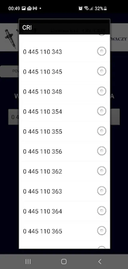 The data contained in the application is divided into injectors for passenger cars and trucks (CRI and CRIN).
