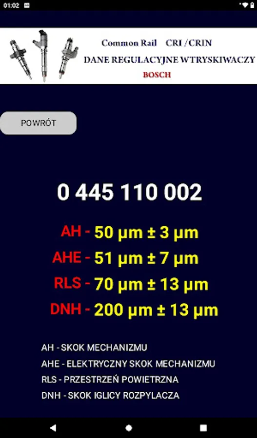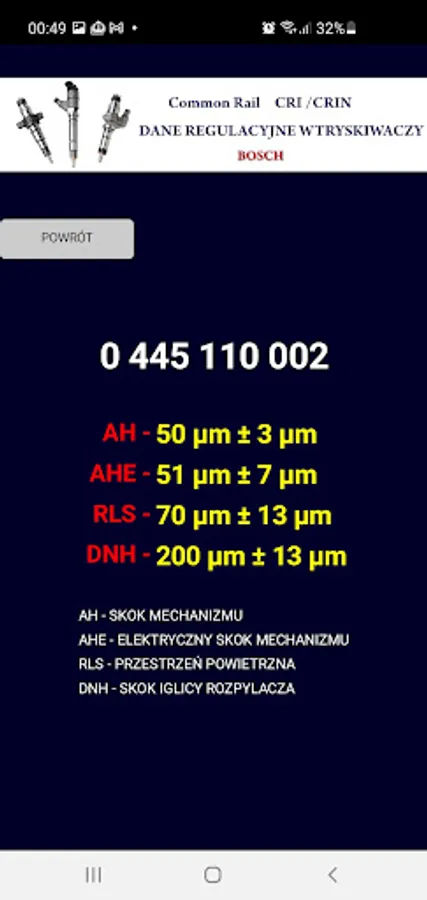 The application does not teach and does not show how to repair the injectors, but provides data for their correct adjustment. I created this application with the idea of accelerating my own work, better organization. A useful application for a seasoned mechanic.