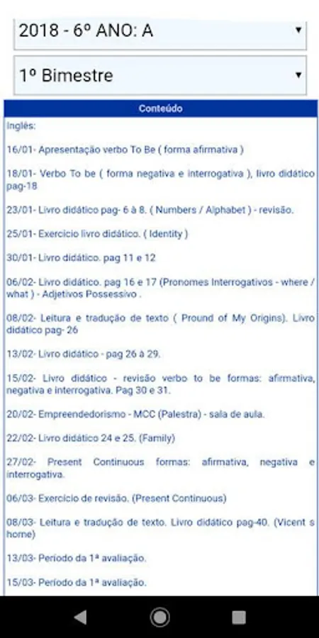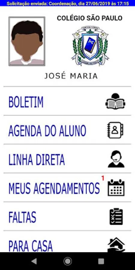 Direct from the APP it is possible to consult: Bulletin, Faults, Content, Schedule Meetings, Occurrences, Issue 2nd Ticket Track, Student Schedule, Home, School News, Announcements, Library, Financial Statement, Calendar, Class Schedule, Statement of IR and miscellaneous notifications.