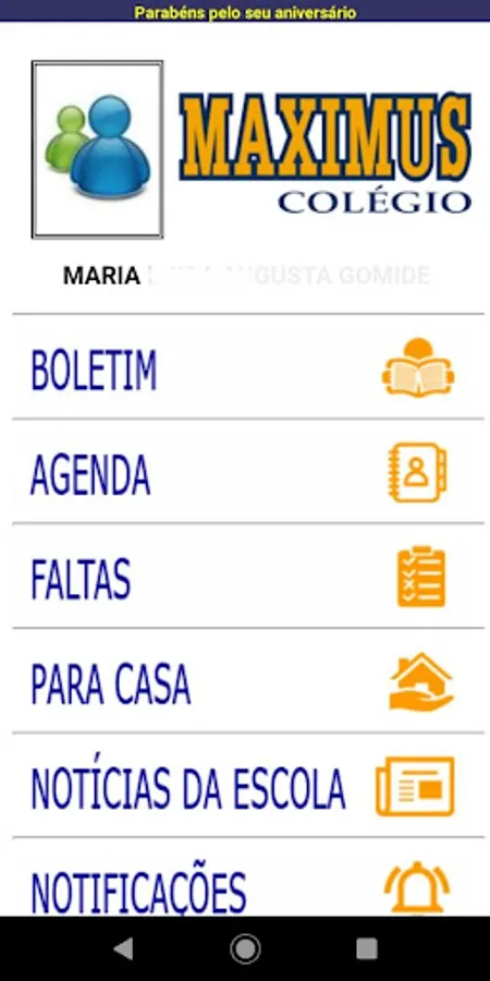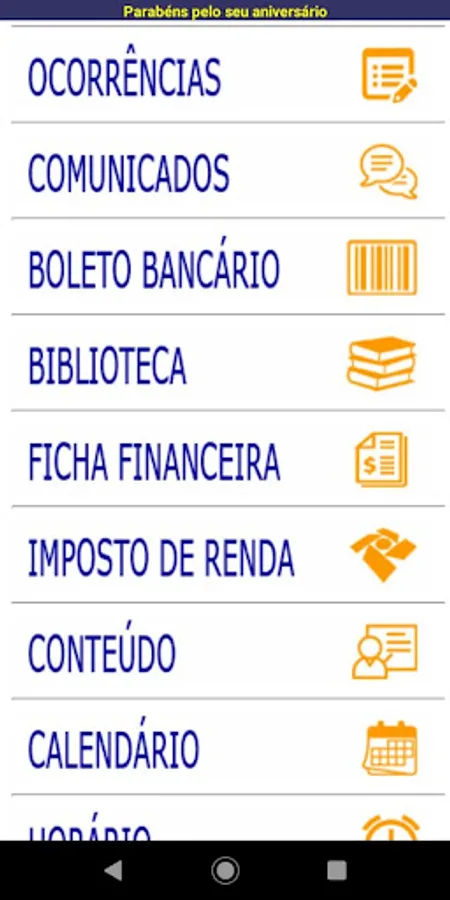 Direct from the APP you can consult: Bulletin, Absences, Content, Issue 2nd copy of Boleto, Financial Statement, Calendar, Class Schedule, Income Statement and Miscellaneous Notifications.