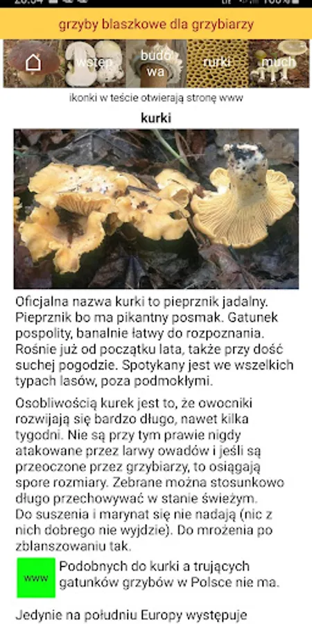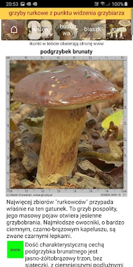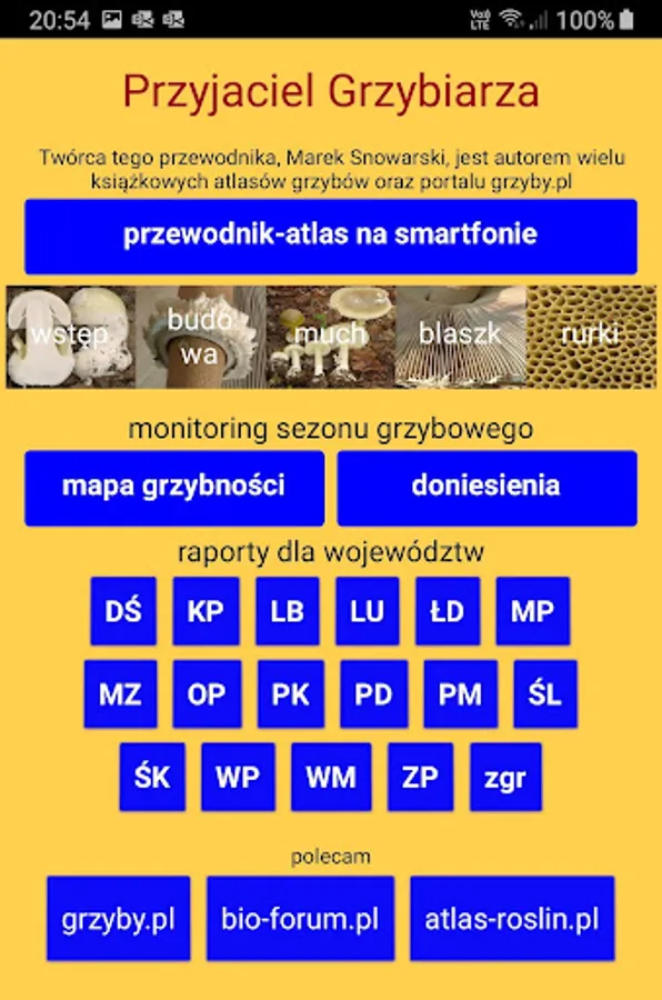 It contains a practical, local (on smartphone) mini guide - mushroom atlas, prepared by the author of many book atlases of mushrooms and the portal grzybby.pl, Marek Snowarski.