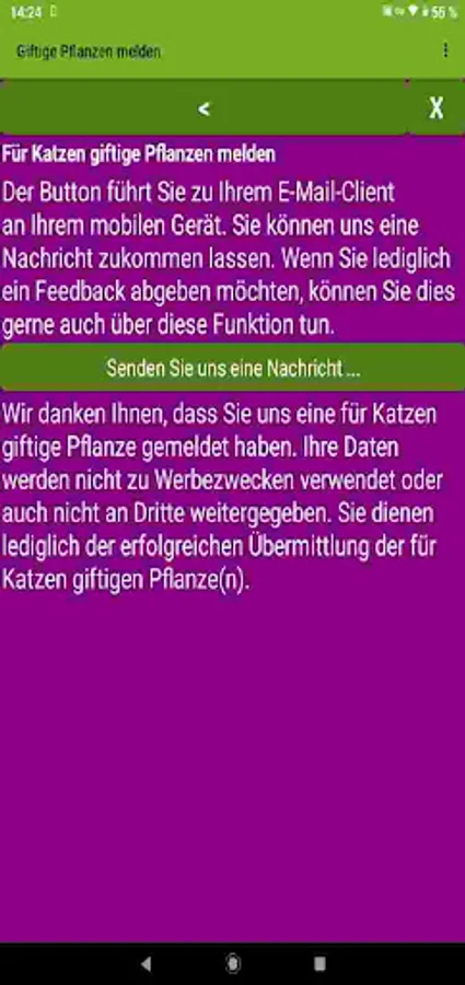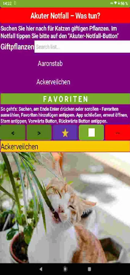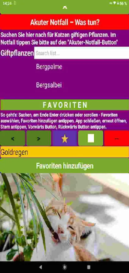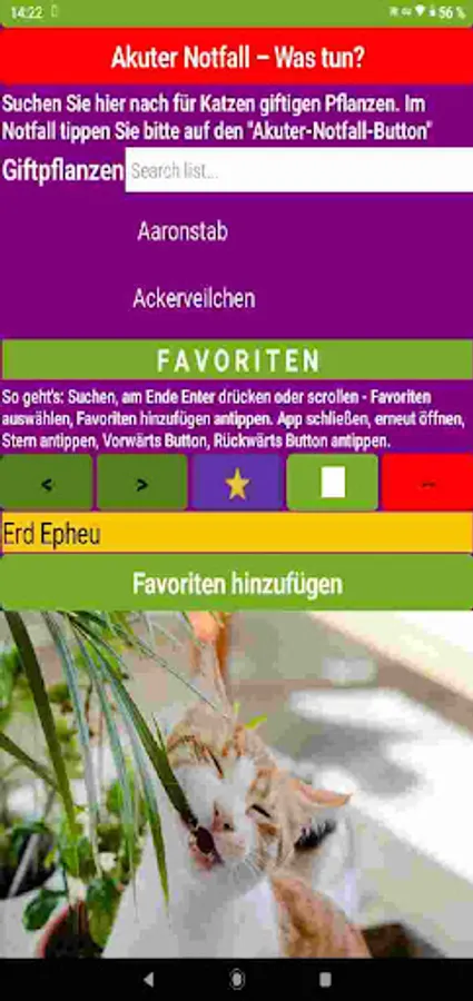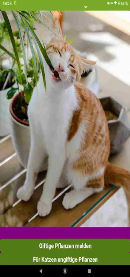 Cats & Plants App: Learn to recognize poisonous plants for cats. In this app you will learn which indoor and garden plants are poisonous for your cat. The cat app is also ideal for on the go when shopping for flowers if you install it on a smartphone.