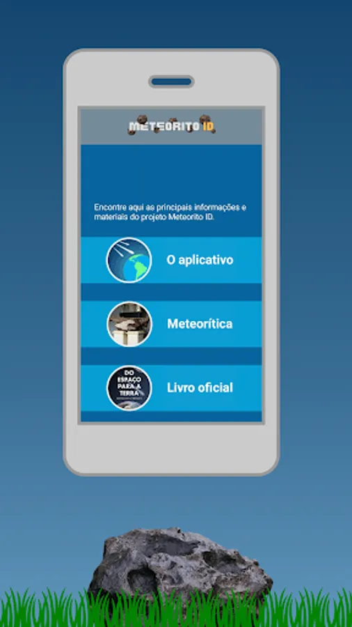 Meteorite ID (available only in Portuguese BR) is a tool developed to assist in the identification of possible meteorites, that is, fragments of solid bodies from the Solar System that cross the Earth's atmosphere and reach the surface.