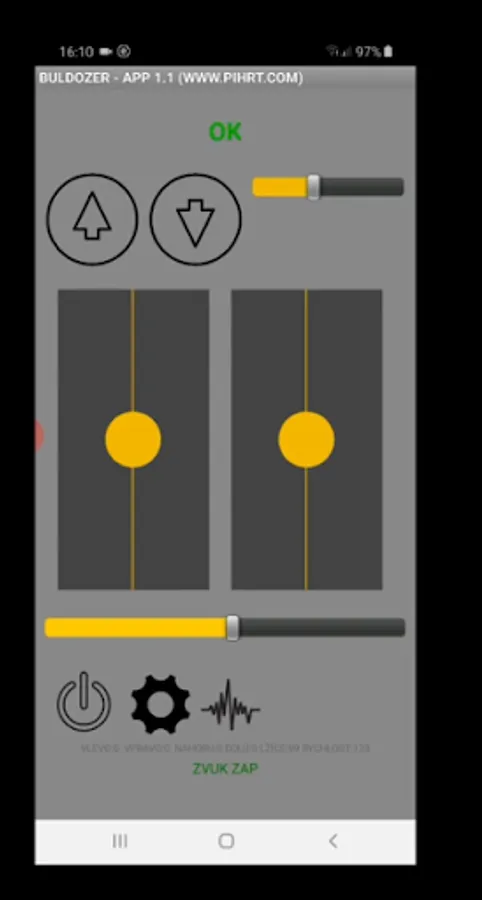 The control is based on the ESP32 processor board. When the power is turned on, an access point named example: "Bulldozer xx" and the password example: "12348765"