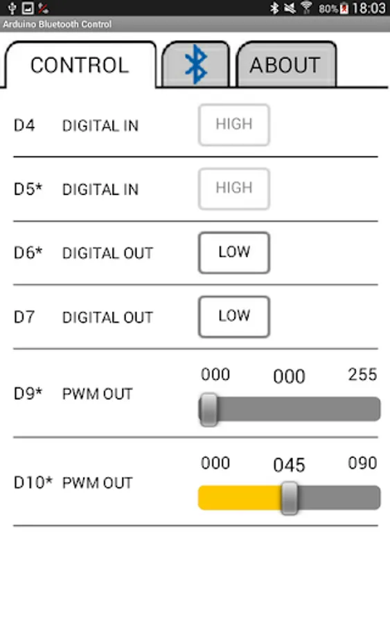 Easy control for Arduino digital and PWM pins.