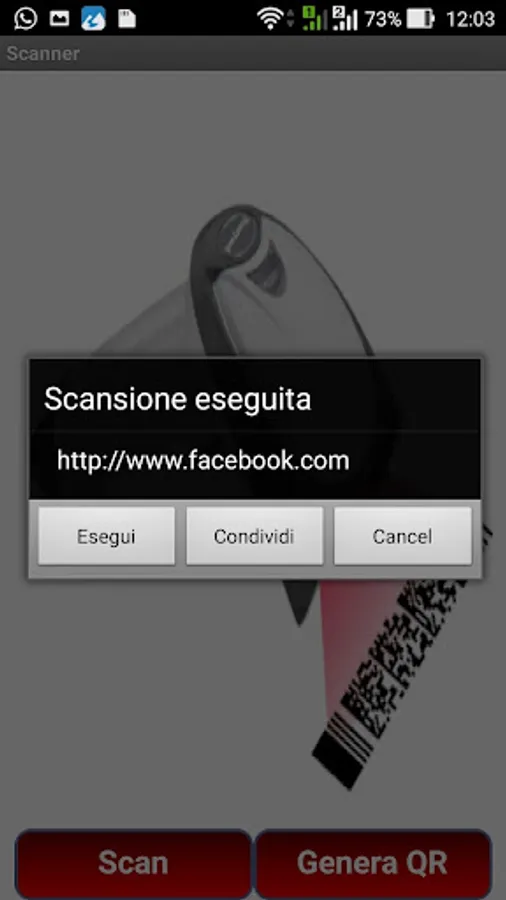 To scan a QR code just open the app, press the Scan and aim the camera at the code and you're done! Everycode Scanner automatically recognize any QR code to which your camera is pointing.