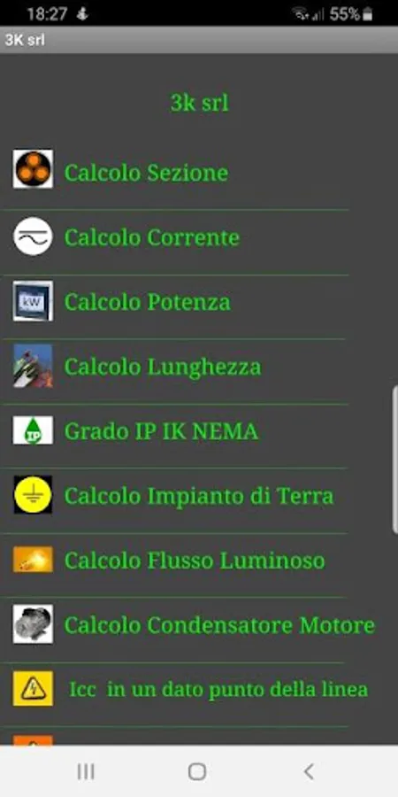This application was created with the aim to give our customers a technical support to perform calculations within the electrical system. It is not a professional tool but only quantitative, it is not a substitute for professional software, or the recommended methods of calculation by the rules. Despite this background can be a valuable help to solve some calculations with a certain speed and with the aid of only one phone. The calculations are that it can play, current calculation, calculation Apparent active reactive power, design of earthing system, Maximum cable length determined the load as well as referrals for contacts of our company.