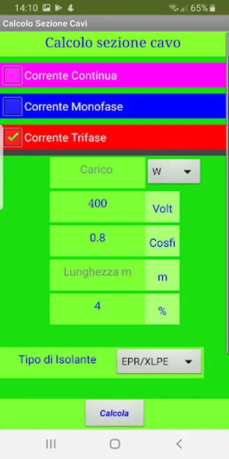 This application has been created to facilitate the identification of the energy cables, through specific menus it will be possible to identify the various wordings of the cable in order to be able to use it at its best; moreover it will be possible to calculate the section and the length of use of a given cable