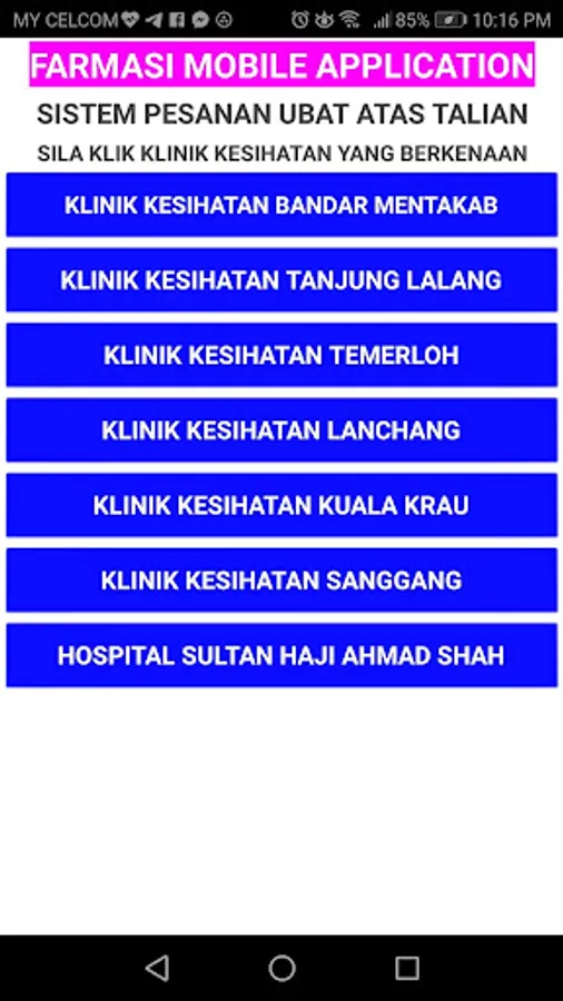 APPLICATION FOR GETTING HEAD BEARING IN PHARMACEUTICAL HEALTH CLINICS IN TEMERLOH DISTRICT