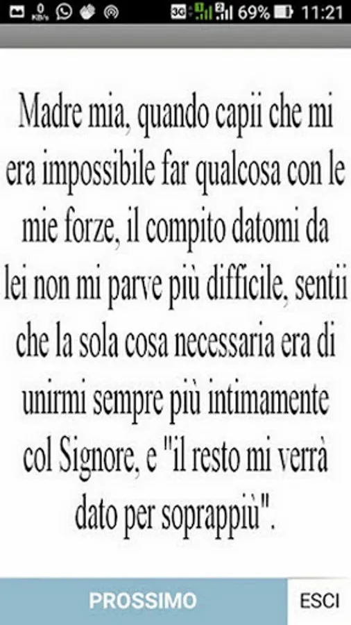 The application randomly displays 140 phrases from the writings of St. Therese of the Child Jesus.