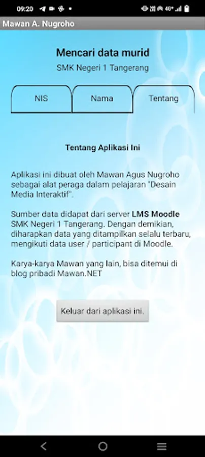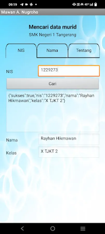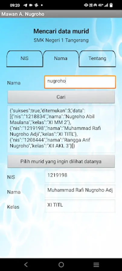 Looking for NIS, name and class for students of SMK Negeri 1 Tangerang. The data is obtained from the Moodle LMS server.