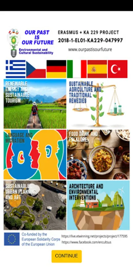 This application is designed for dissemination of the project and inform people who are interested in SUSTAINABLE AGRICULTURE and TRADITIONAL REMEDIES, Renewable Energy and Sustainable Tourism,Language and Migration,Food Drink and Folklore, Sustainable Urban Planning and Art, Architecture and Environmental İnterventions.