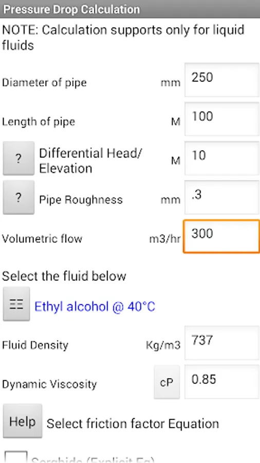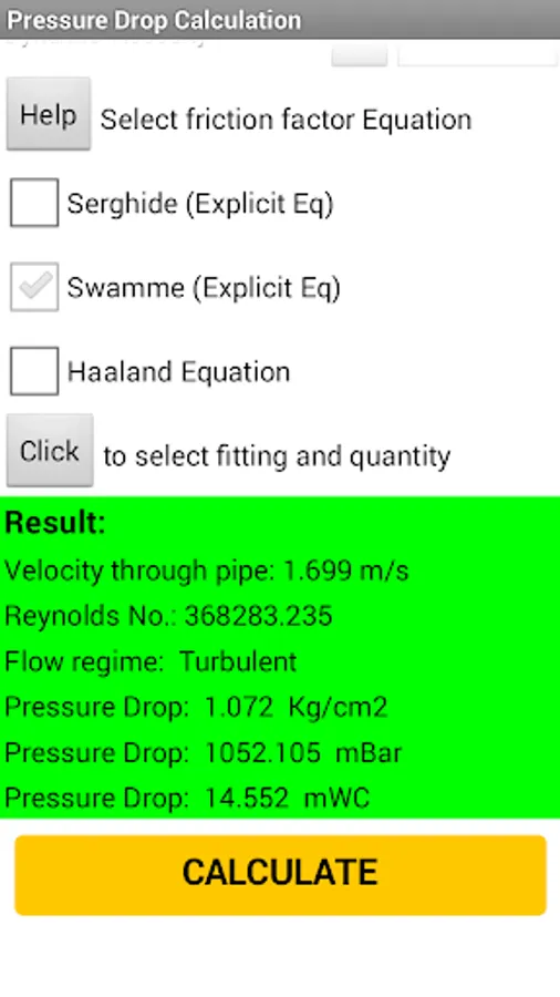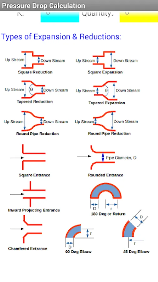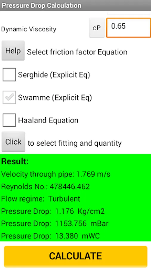 12) Pipe pressure drop calculation which support various pipe fitting, exit entrance losses having large database viscosity and density for common liquids.