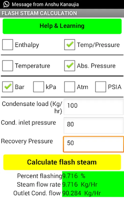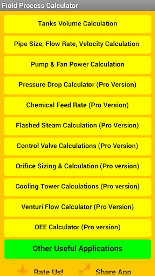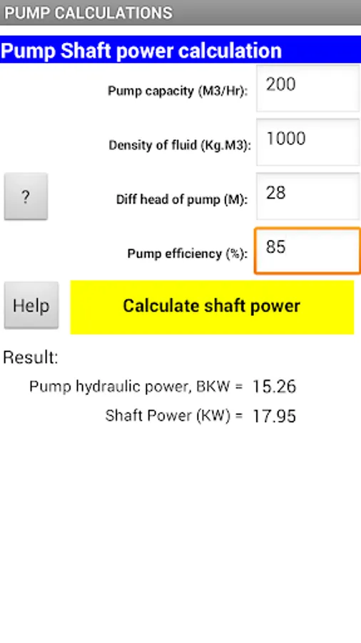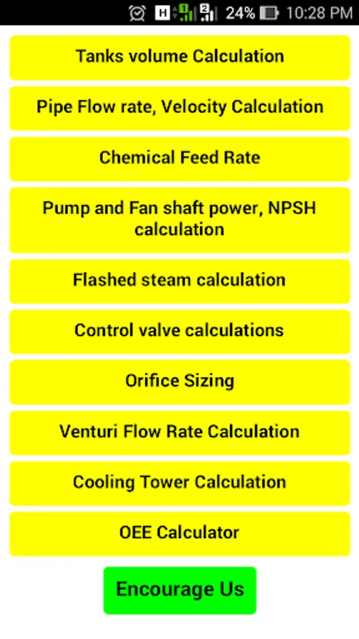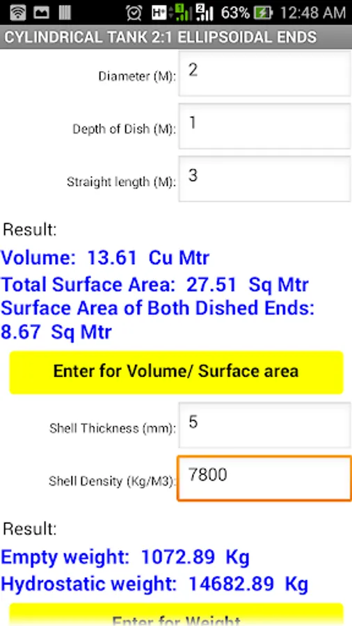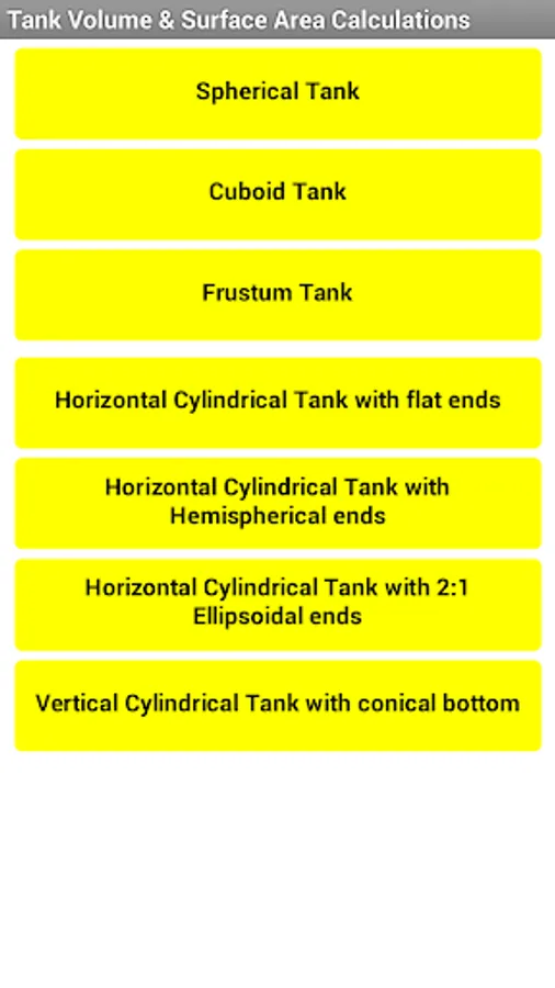 Application provides you the calculator for various calculations like Volume, surface area, empty weight, hydrostatic weight for various tanks. it also provides you the flash steam calculation, pump shaft power, pipe flow calculation etc.