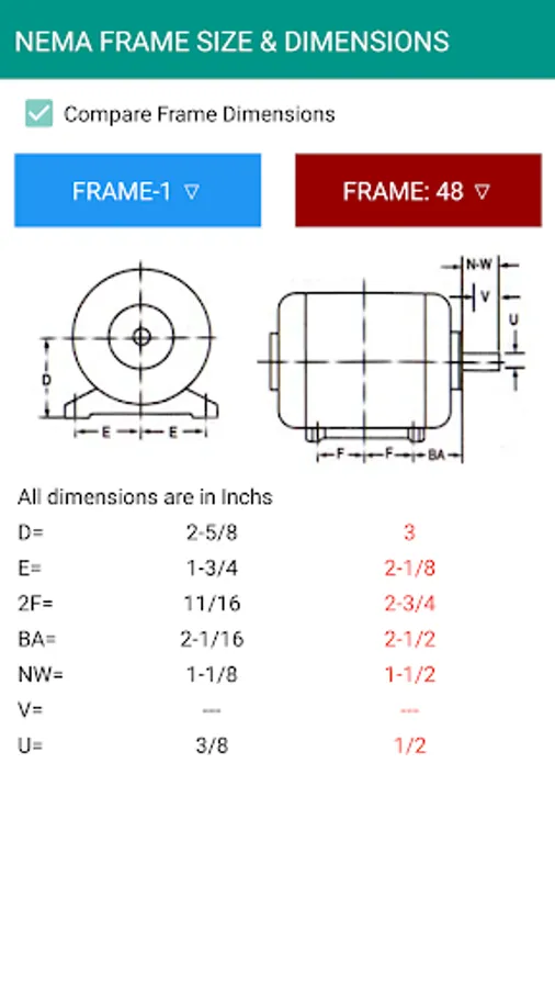 2) NEMA & IEC dimension for motors