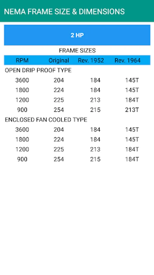Also It will help you to get to know which HP rating motor has which NEMA frame size, according to that you find out major dimensions of the motor.