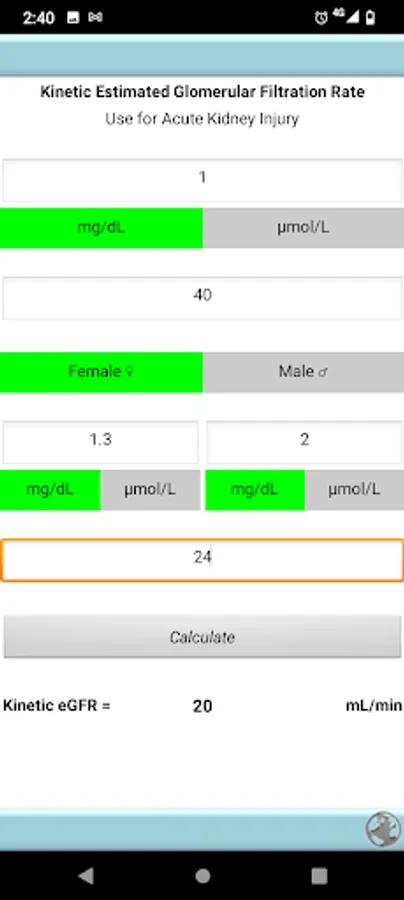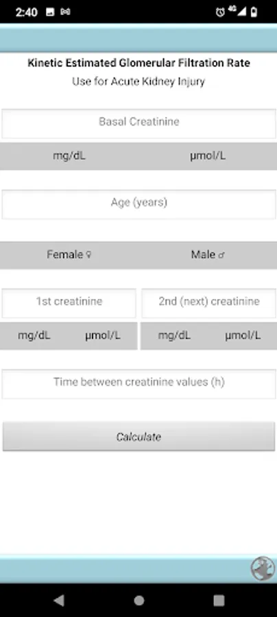 "Real eGFR" is a program that allows you to quickly and easily estimate the glomerular filtration rate. Both, in chronic and acute patient pathologies.