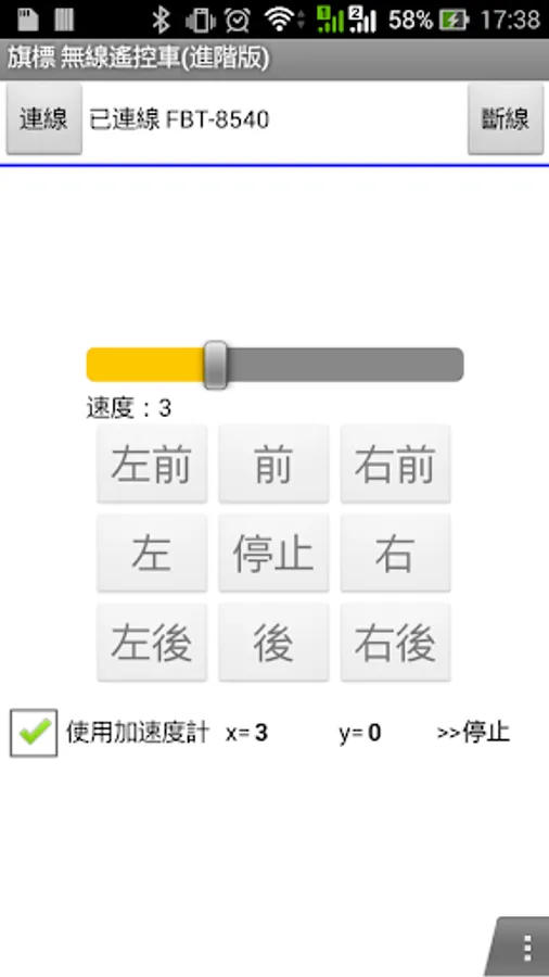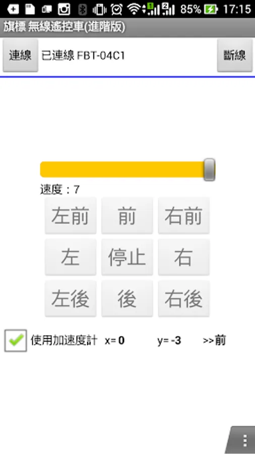 This is the flag AIAD teaching kit iTank smart mobile platform programming paradigm basic models, user can use the phone screen button on the remote iTank road, you can also enable the accelerometer sensing, using a mobile phone to guide iTank tilt direction of travel to reach the remote and somatosensory acceleration gauge the effectiveness of teaching.