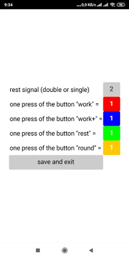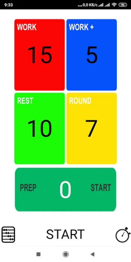 Set intervals of work, rest, number of rounds by short pressing. Press the Start button and start your workout. Resetting to zero values is performed by long holding the selected button.