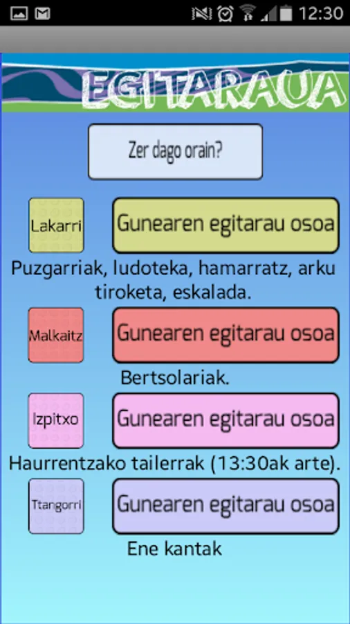 Egitaraua, aparkalekuak, Bideoak, abestia, Jokoak ... informazio aurkituko guztia duzu aplikazioan.