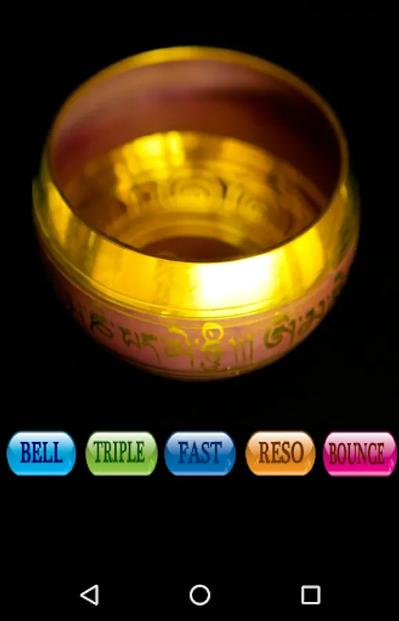 Choose different kind of effects touching the color buttons and the sound will be accurately reproduced through speakers of phone and listen in the silence the relax of the effect of the mystical tibetan bowls.