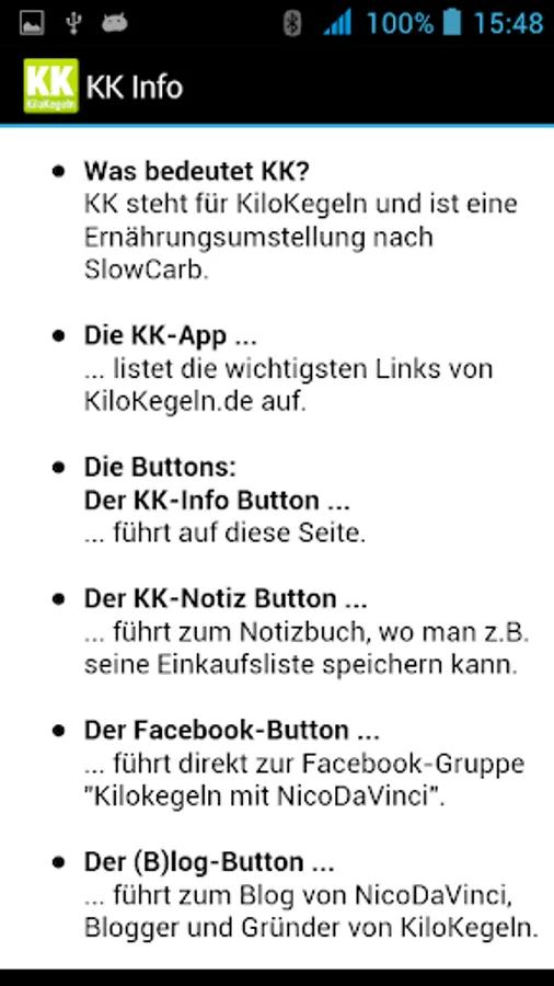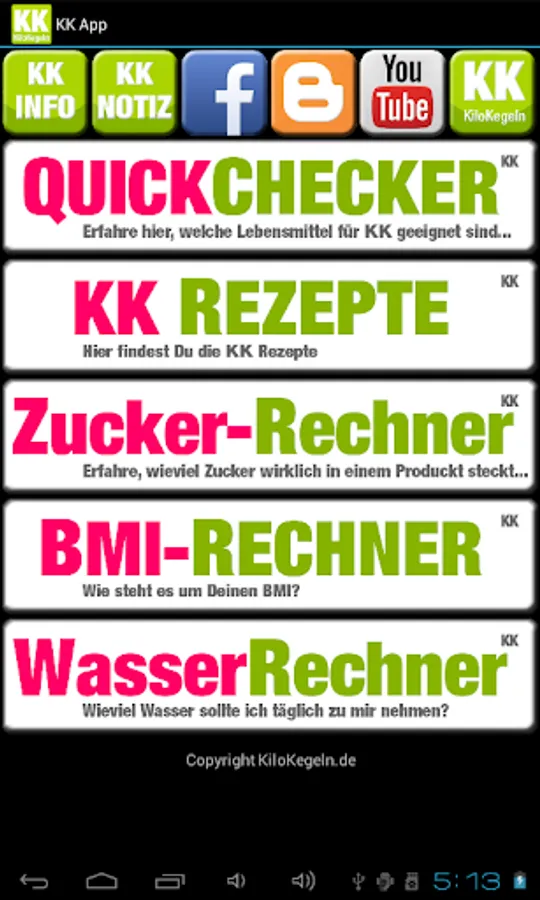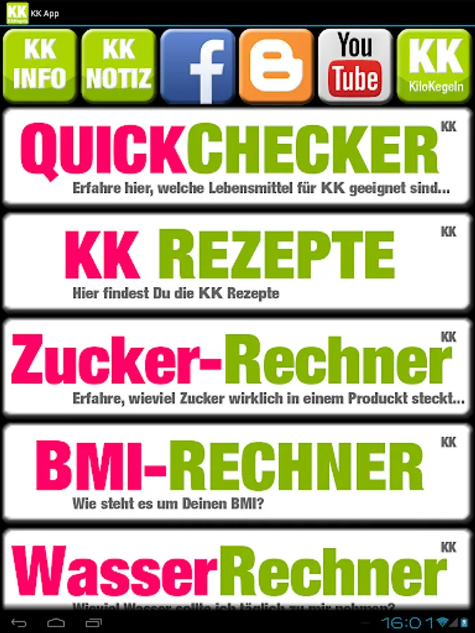 With the KK app all important links to the concept of KiloKegen are clearly summarized. You will go quickly with one click to the desired information. These include: