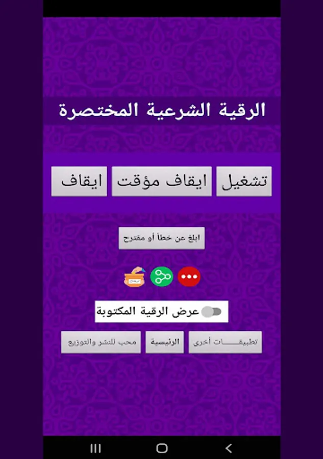 نضع بين يديك الرقية الشرعية مكتوبة بحيث تتمكن من قراءة الرقية الشرعية مكتوبة مختصرة من خلال هذا التطبيق الذي يحتوي على الرقية الشرعية مختصرة