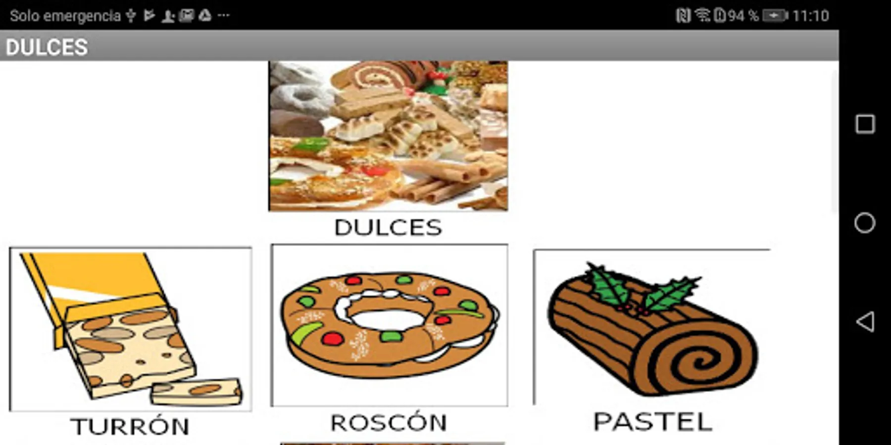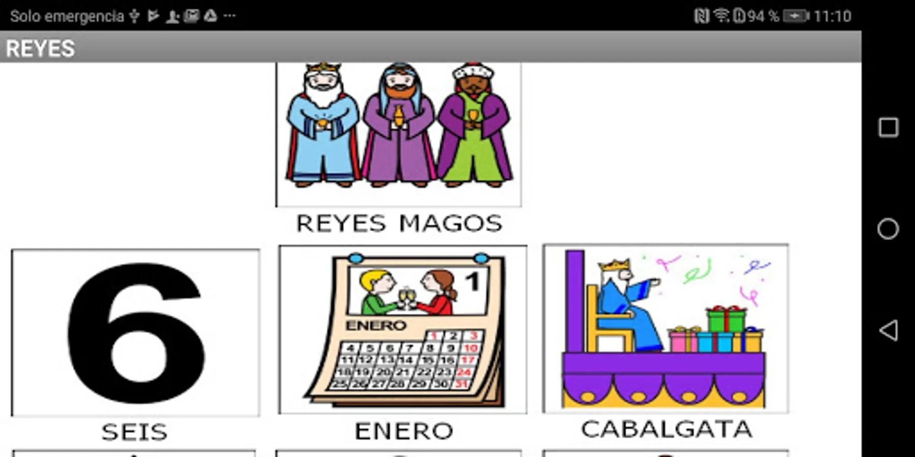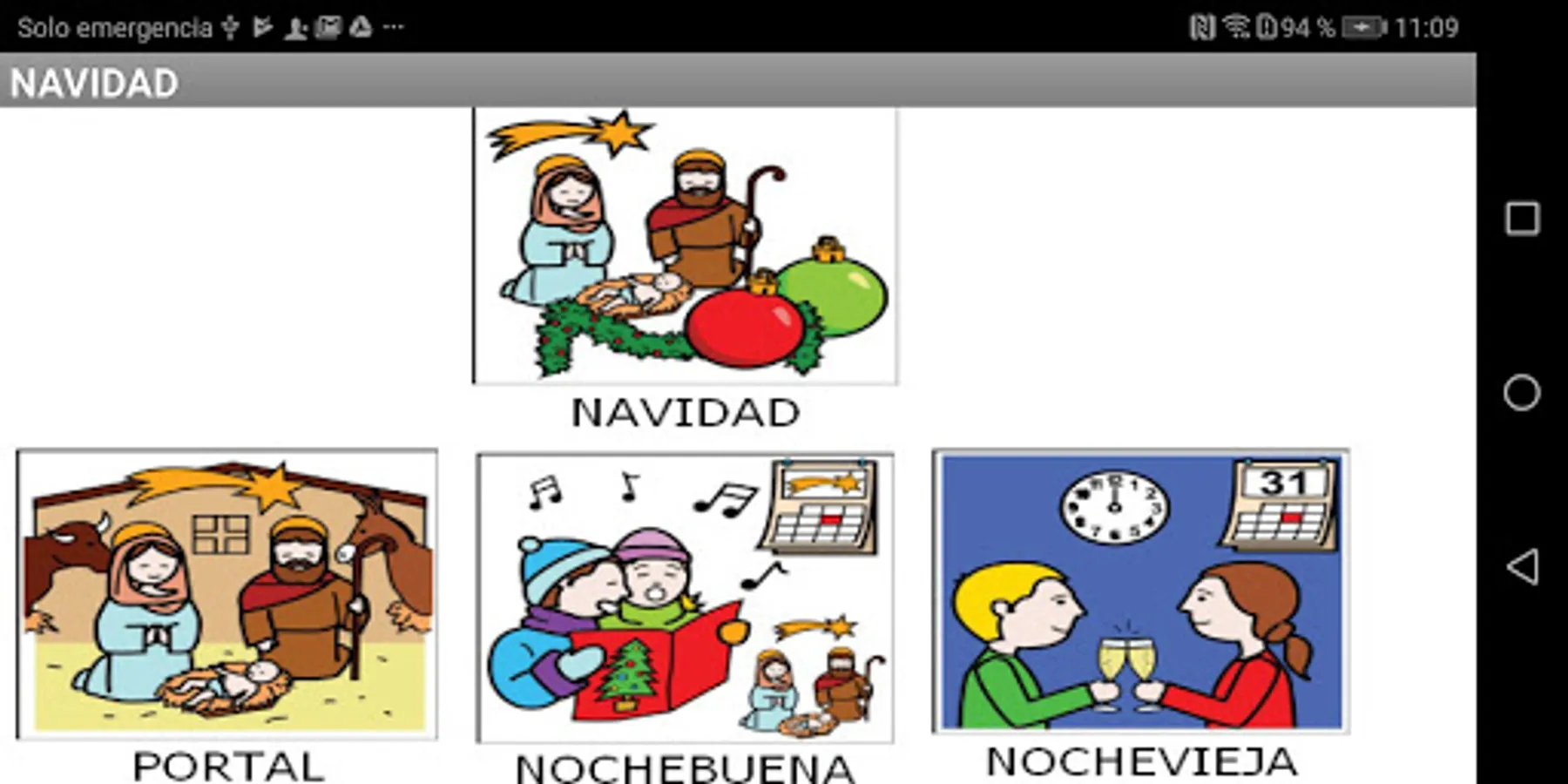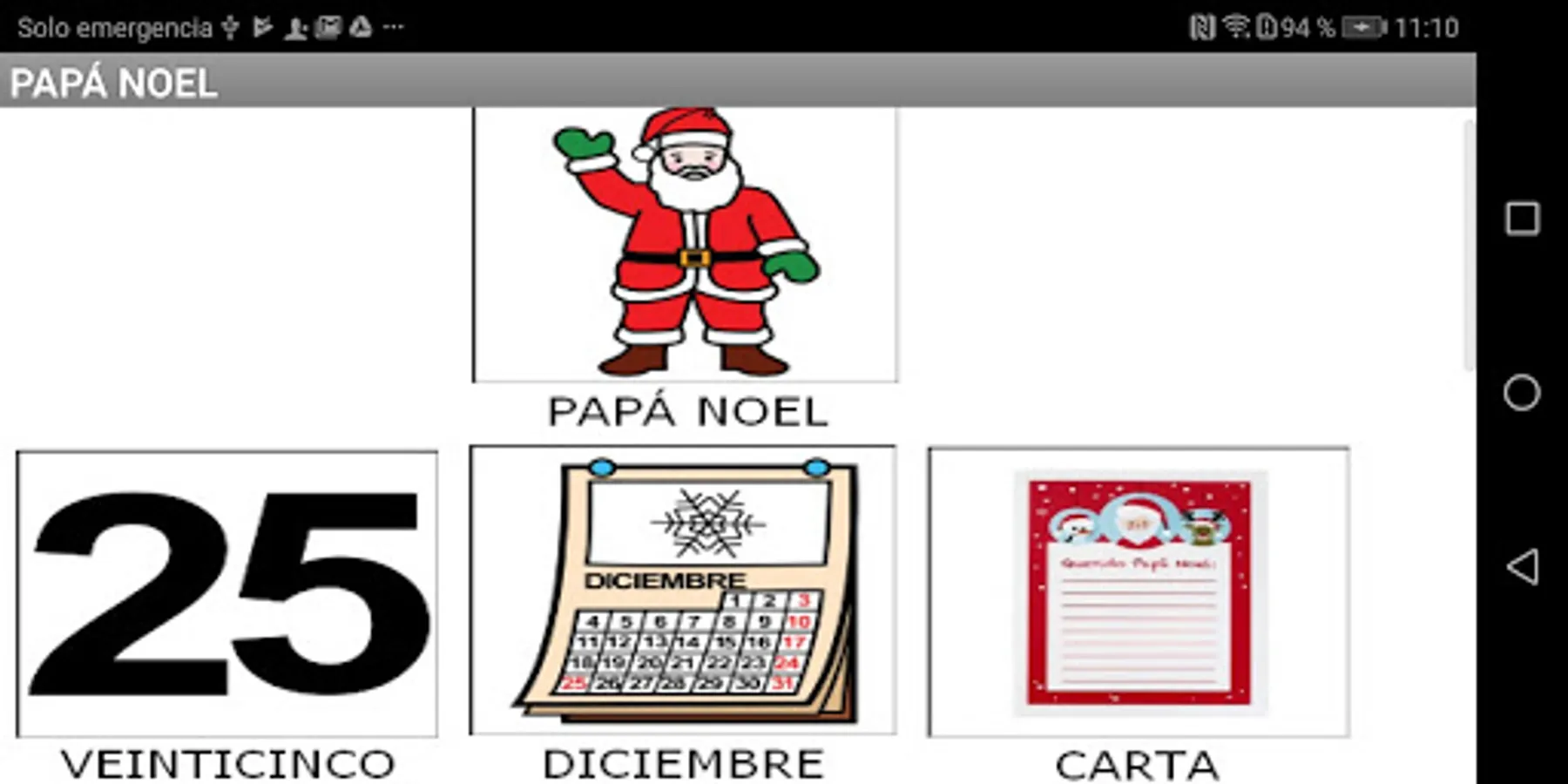 Christmas communication board with buttons that open other windows or increase the chosen pictogram.
