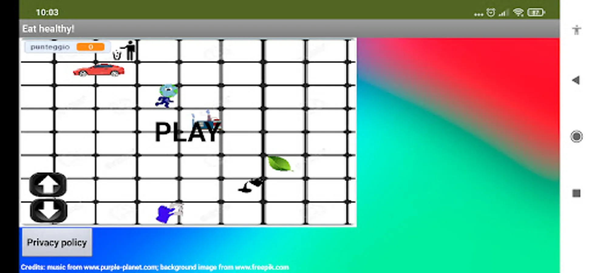 The Earth-puppet gets 3 points when it meets something good for the Earth and loses one point when itencounters things that damages / pollutes the Earth. If you reach 50 points, you move on to the second level (in which the items move faster). If you reach 100 points, you win.