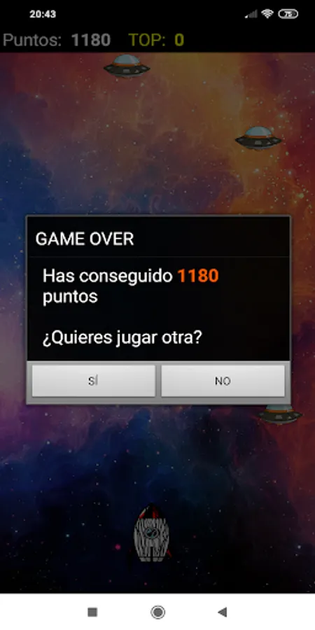 Destroy the flying saucers before they reach Earth. For each dish that you destroy, you will add 10 points. For each one that arrives, you will lose 200 points if you have them on the scoreboard, otherwise you will lose a life, just like if you hit one of the enemies.