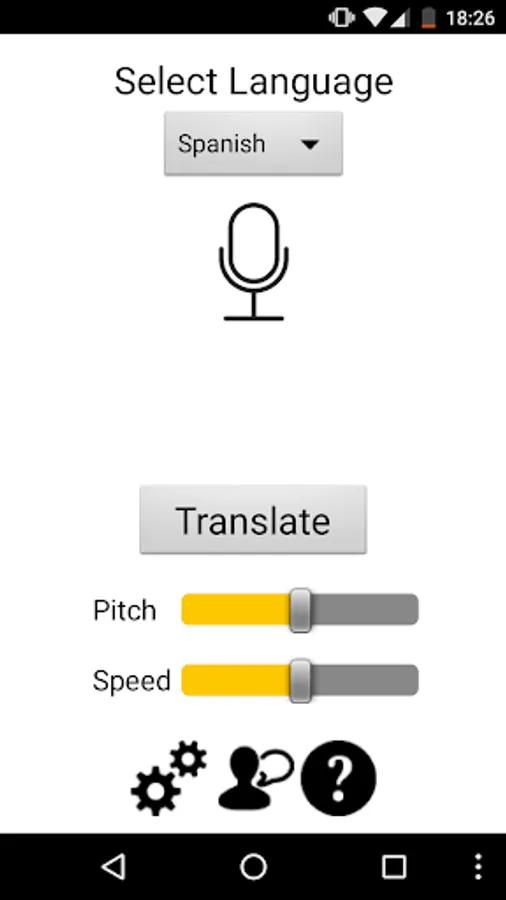 Press the microphone and pronounce it in your language the word or phrase that you 'want to translate, it will be displayed on the screen. If it has-been Recognized correctly, you only need to click on the "Translate" button to display and listen to the translated text to the selected language. You can adjust the pitch and speed of the locution to hear it more Clearly and accurately.