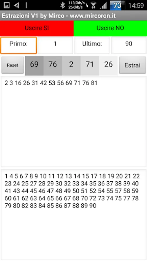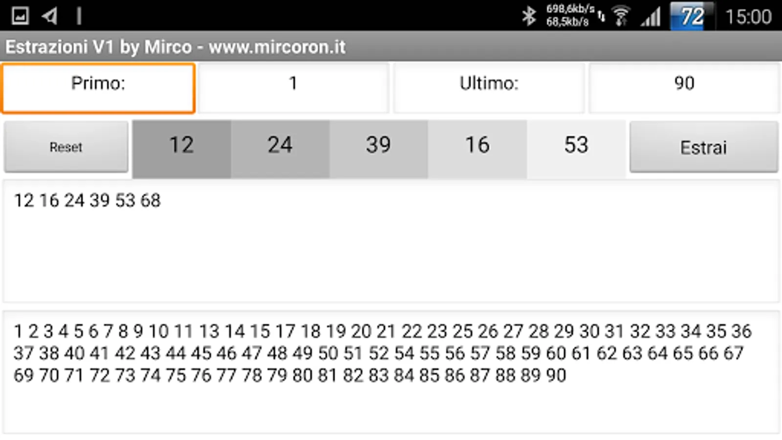 It can be used to extract a list of awards or for the raffle, you can set the starting number and the ending number. You can see the list of the extracts, the list of numbers still to be extracted and the history of the last 5 extracts.