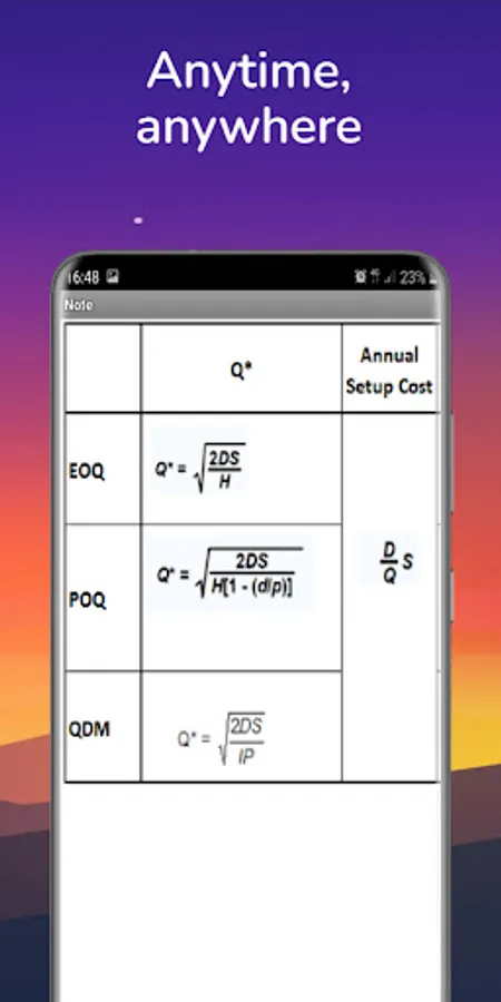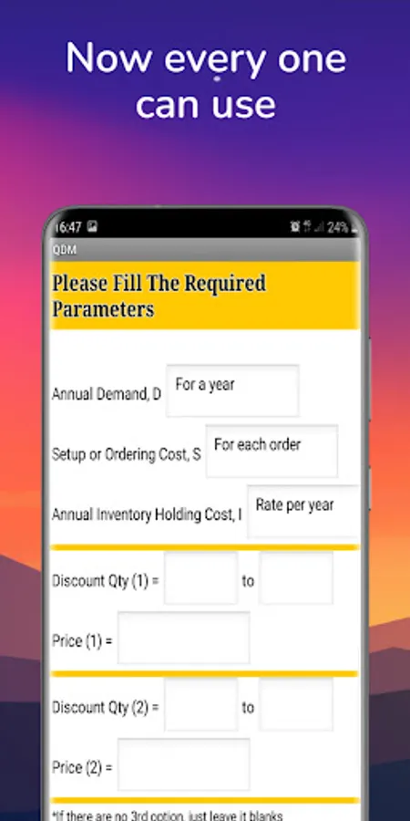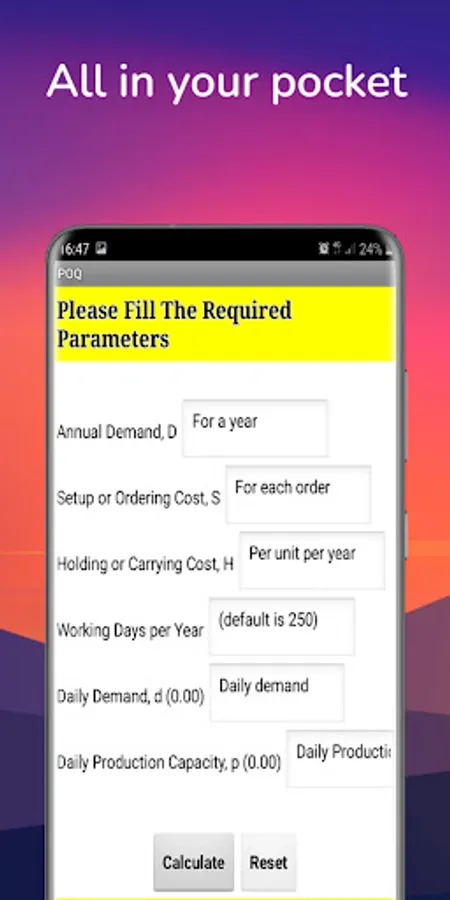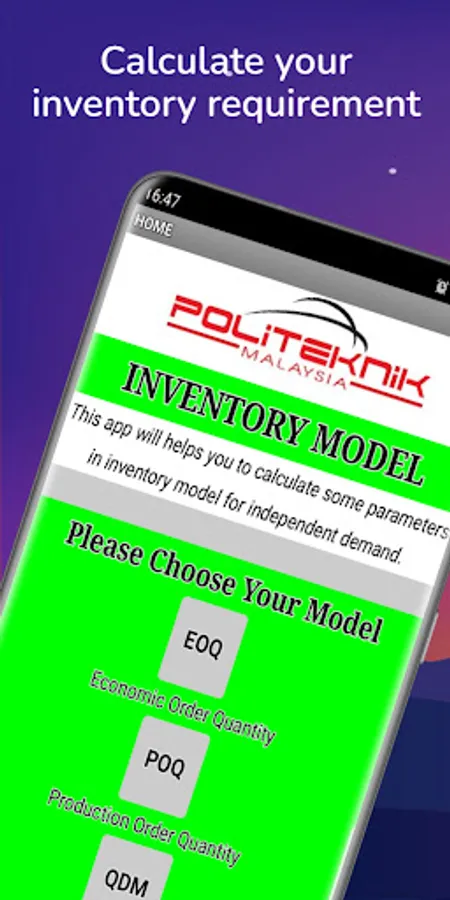 This app will helps you to calculate inventory model parameters for independent demand.
