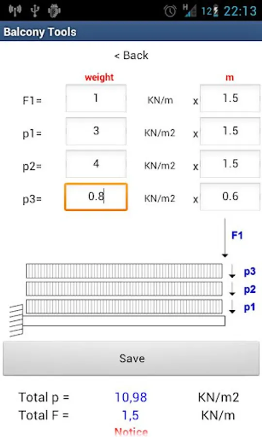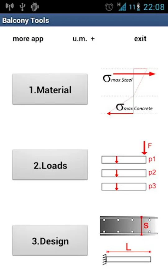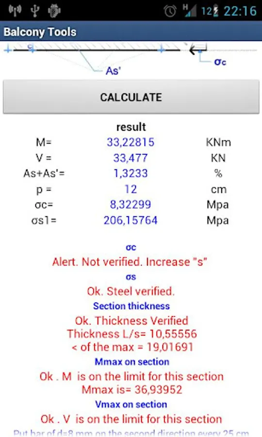 A useful application for the Architects and the Engineers. Design the structural part of a balcony in 3 step. Useful for estimate a cantilever slab before the total calculation of a more complex structure.