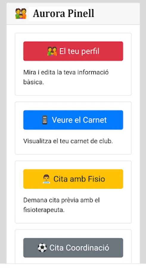 The application offers services and utilities for the families of the football base of the Football Club Santboià: virtual card, information, previous appointments and other functions that will be added.