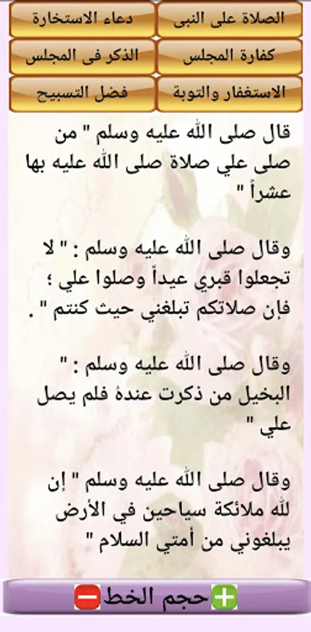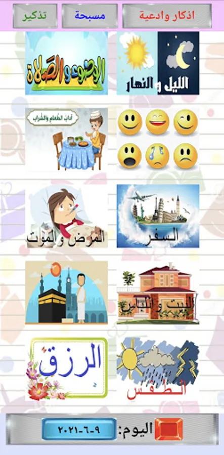 The application contains supplications and Muslim remembrances from the Qur’an and Sunnah, and the application contains an electronic rosary and a memo at the time of remembrance