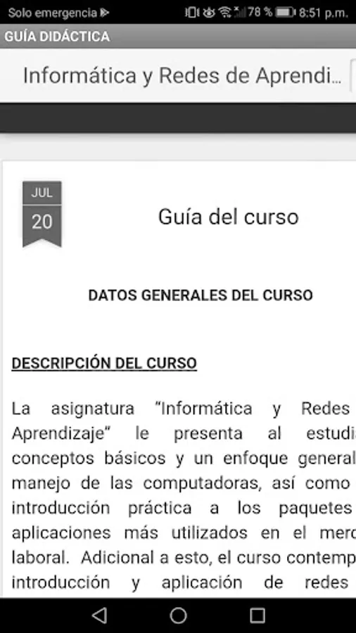 Educational application with a compilation of contents about computer science and learning networks.