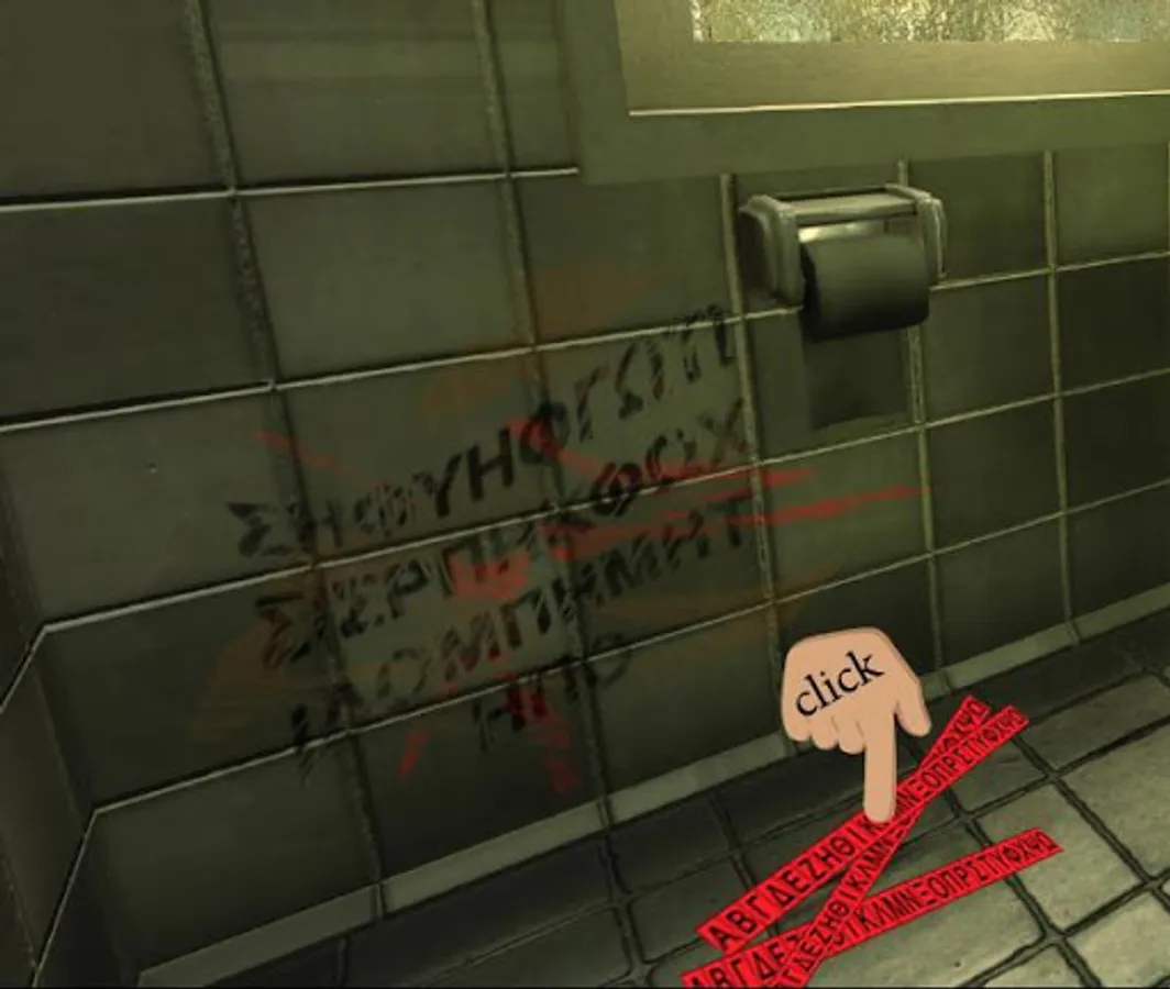 You are locked in a dirty toilet. It's important to get out of here and then everything else gets in the way. Someone wanted to help you and left a mysterious message on the black marker tiles. You have to solve the puzzle to get some coordinates from there. The coordinates will be given to you two characters for each word the puzzle gives you, (keep notes for each pair of characters you are given). At the end you will have e.g. such a result 66RQF89P + G6. With the exception of the last + G6 that always comes in last, the remaining four pairs of characters will have to find you the combination in the Google Map search that will lead you to the location where you will get your escape code (details in game instructions).