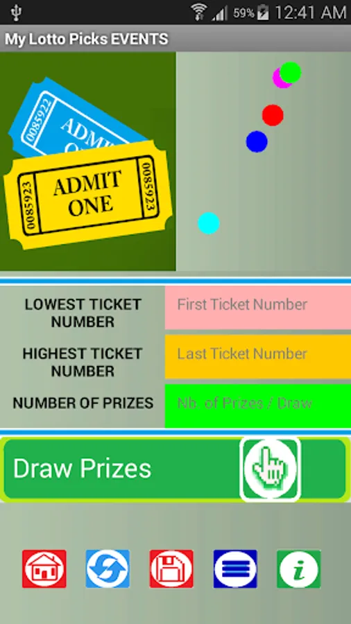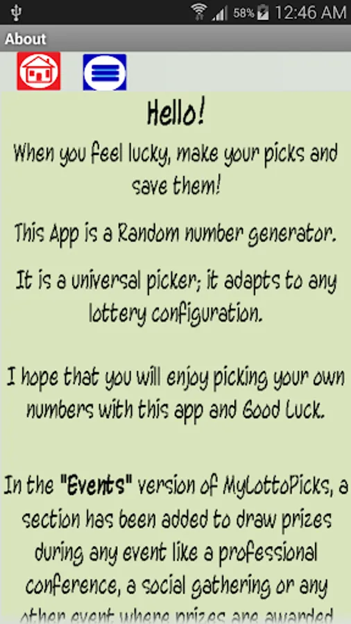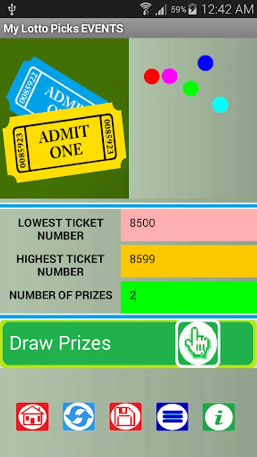 This is the "Events" version of MyLottoPicks, a section has been added to draw prizes during any event like a professional conference, a social gathering or any other event where prizes are awarded randomly.